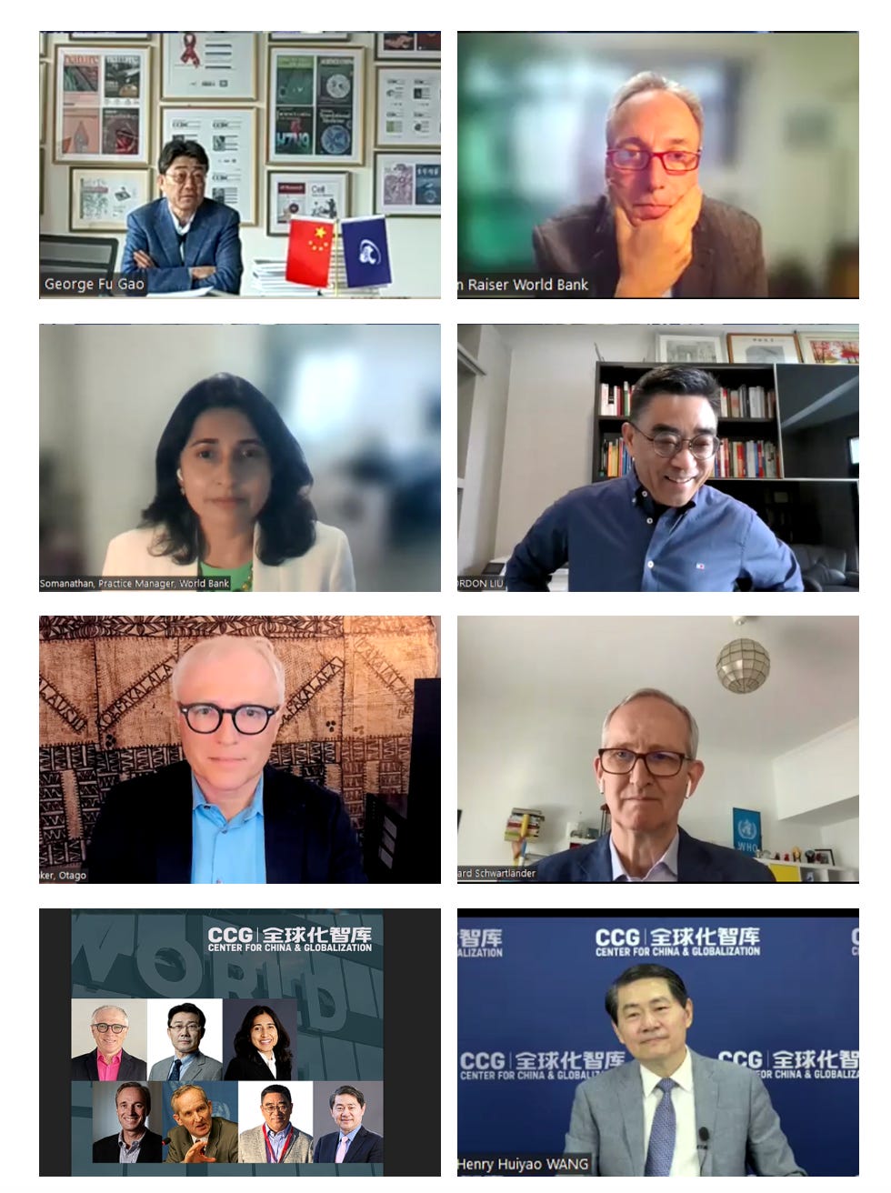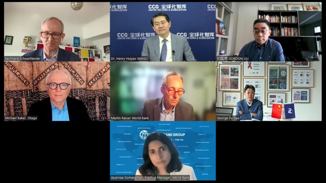 Henry Huiyao Wang hosted Geroge Fu Gao, Gordon Liu, Bernhard Schwartländer, Martin Raiser, Aparnaa Somanathan, and Michael Baker in an online seminar and then submitted recommendations.