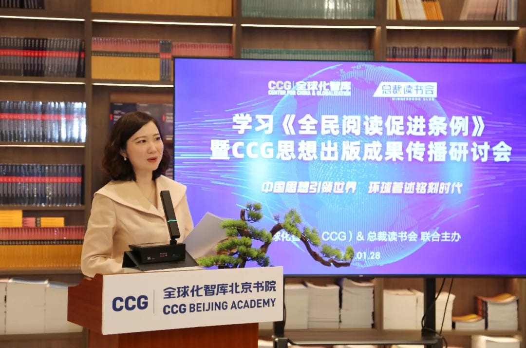 On January 28, 2026, the Center for China and Globalization (CCG) and the Winner Book Club, a Chinese entrepreneurs’ reading programme, hosted a seminar at the CCG Beijing Academy on CCG’s publishing work. Participants reviewed nearly three decades of publications by CCG founder and president Henry Huiyao Wang and secretary-general Mabel Lu Miao.