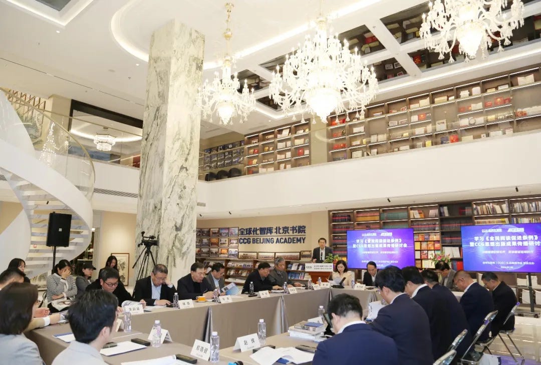Participants from publishing houses, universities, media outlets, and industry reviewed major titles and translation projects led by Henry Huiyao Wang and Mabel Lu Miao.