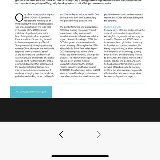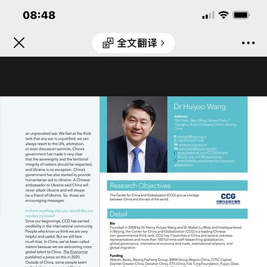 CCG has also been frequently described in reputable international media outlets as a non-government thinktank, such as in the Financial Times, NBC News, and Bloomberg.