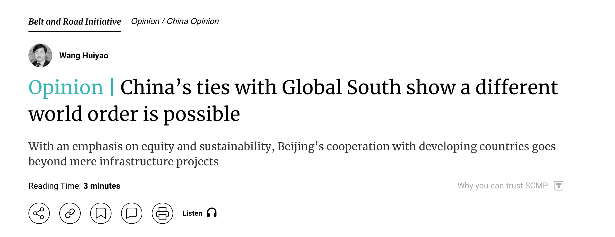Below is the latest opinion column in the South China Morning Post by Henry Huiyao Wang, Founder and President of the Center for China and Globalization (CCG).