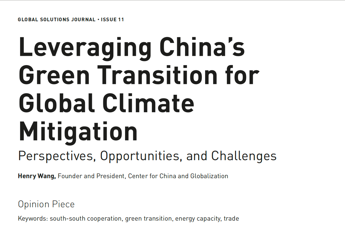 Henry Huiyao Wang: Leveraging China’s Green Transition for Global Climate Mitigation