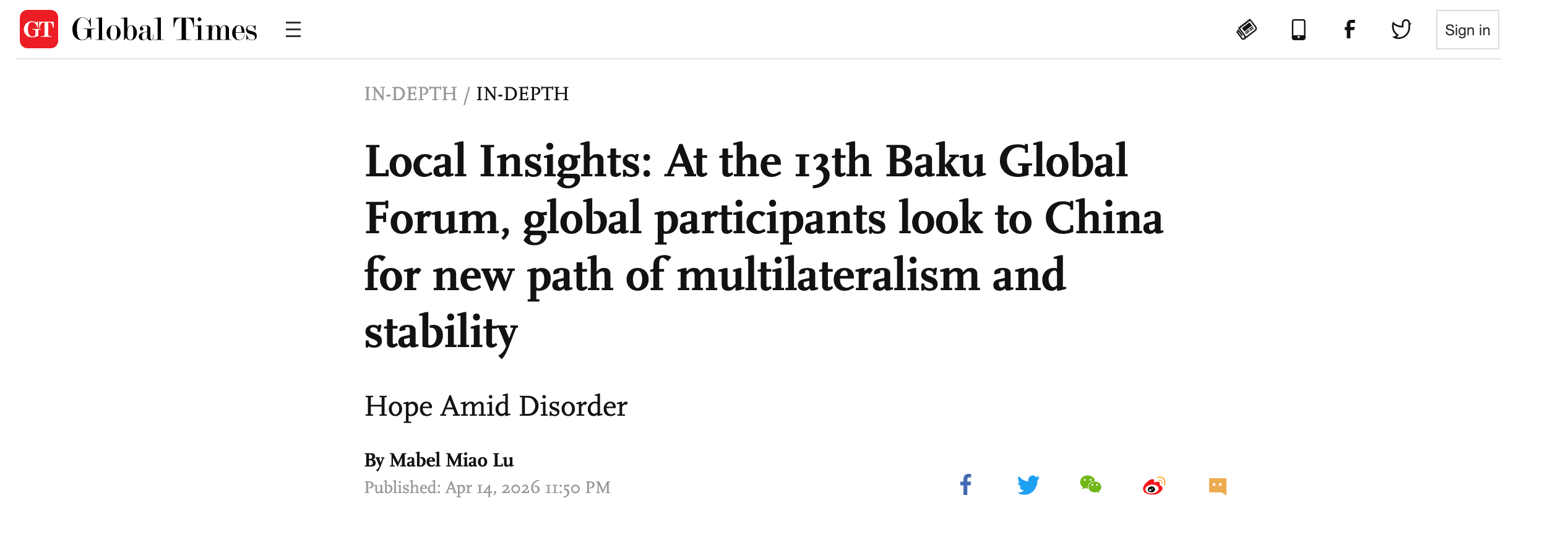 Local Insights: At the 13th Baku Global Forum, global participants look to China for new path of multilateralism and stability