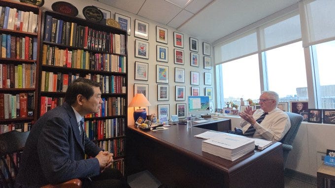 On April 14, 2026, Henry Huiyao Wang and Mabel Lu Miao of the Center for China and Globalization (CCG) met with Dr. Michael Pillsbury, Senior Fellow for China Strategy at Heritage Foundation.