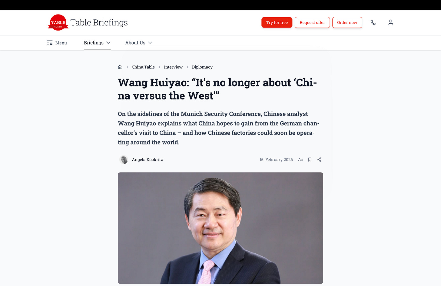 Henry Huiyao Wang’s interview with Table.Briefings, 15 Feb 2026