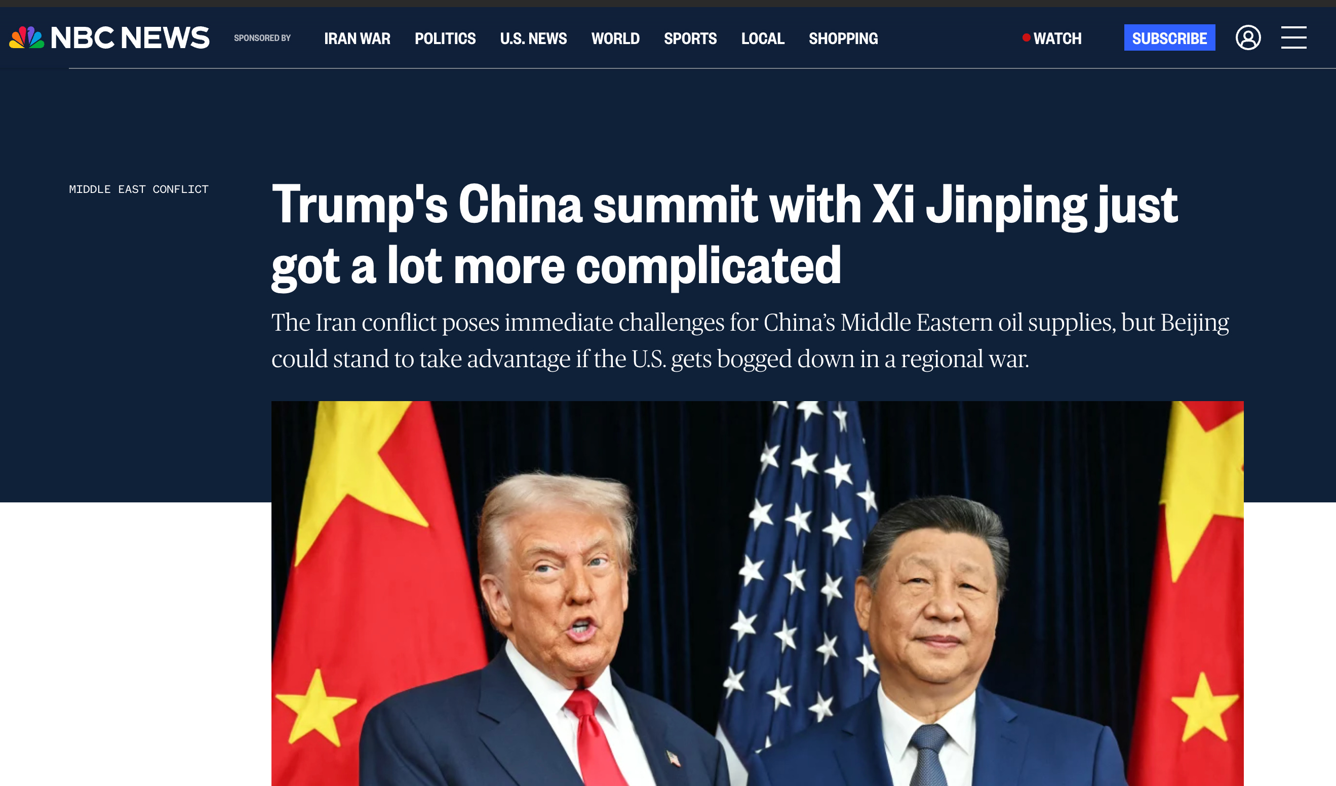 If anything, he said, the Iran conflict gives even greater urgency to a meeting between China, the Middle East’s largest trading partner, and the U.S., the region’s largest security partner.