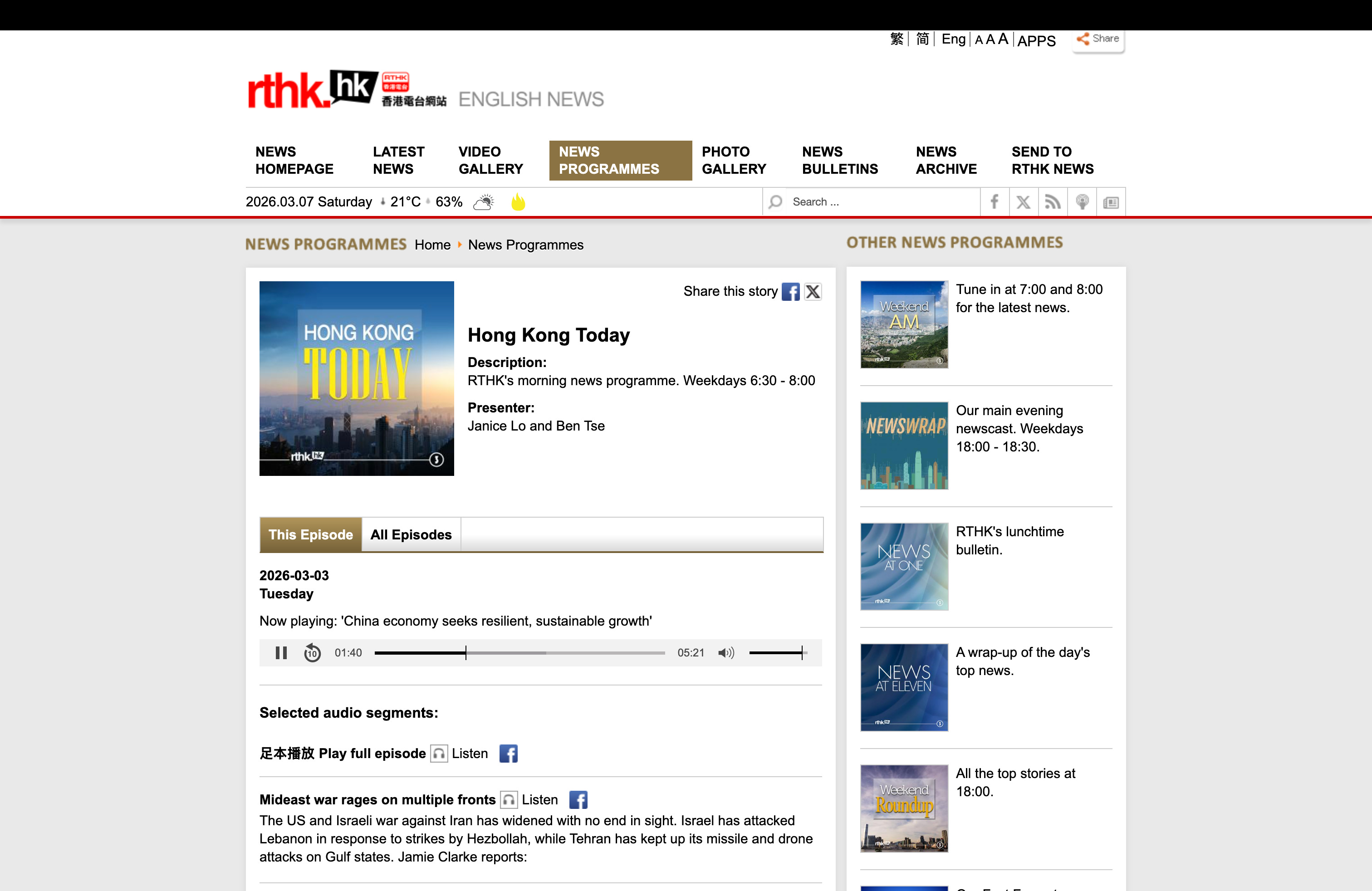 Zoon Ahmed Khan’s appearance on Radio Television Hong Kong (RTHK), 3 Mar 2026
