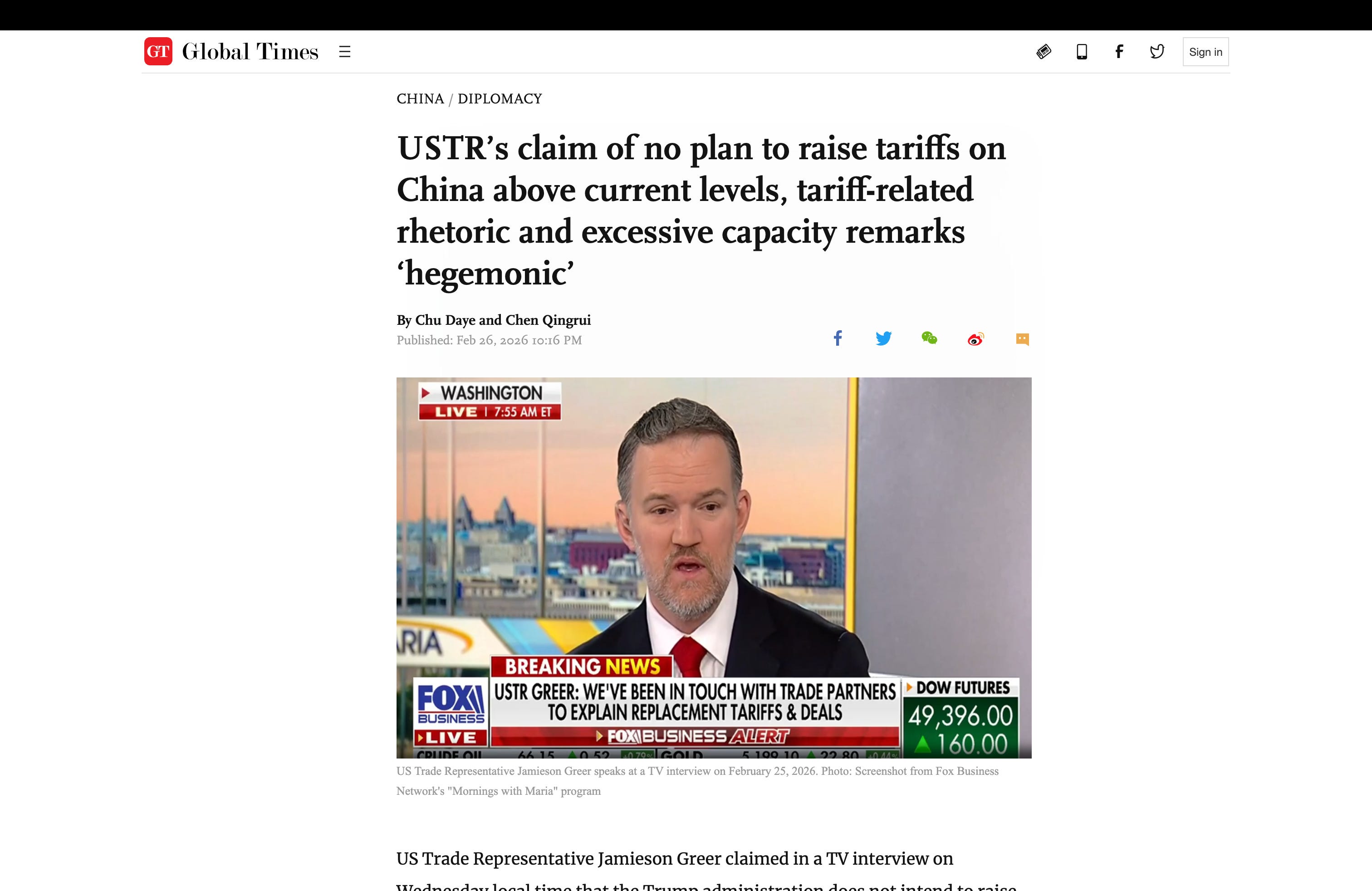 He Weiwen’s quote on Global Times, 26 Feb 2026