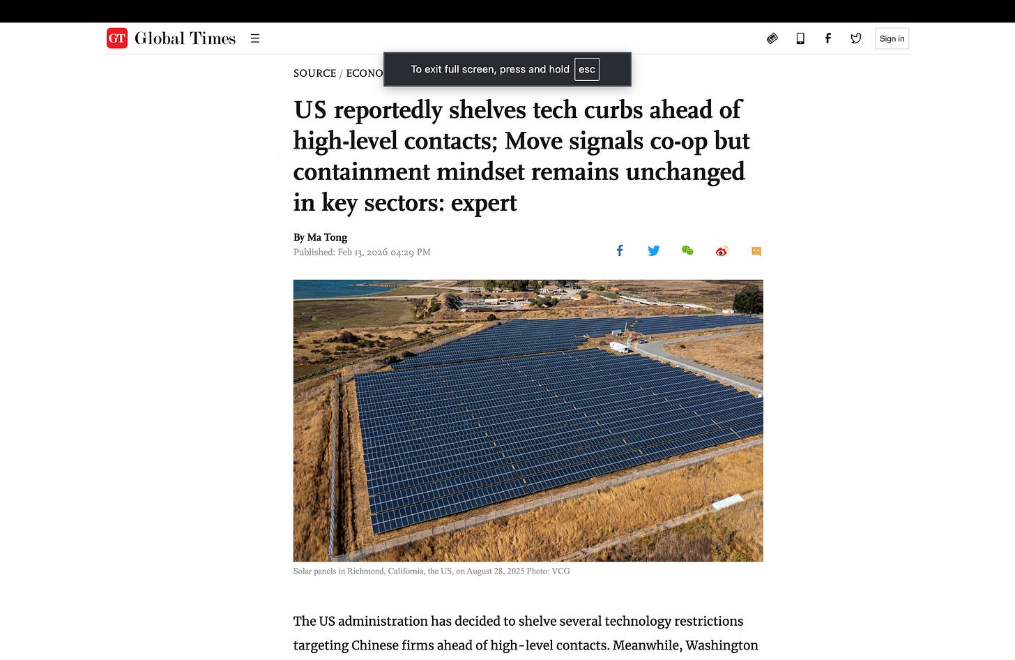 He Weiwen’s quote on Global Times, 13 Feb 2026