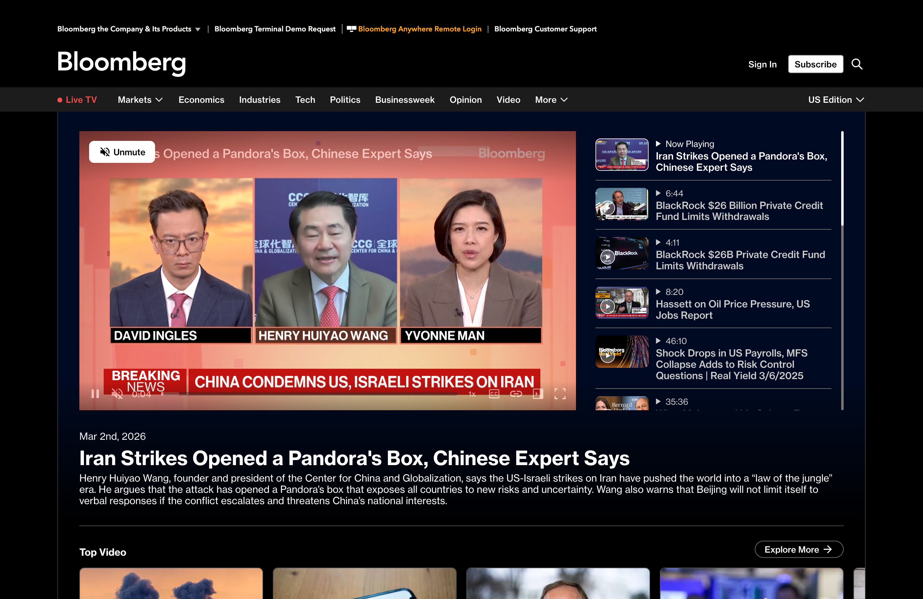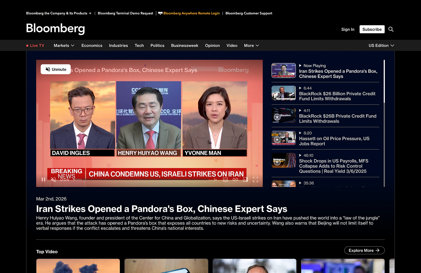 Henry Huiyao Wang’s appearance on Bloomberg Television, 2 Mar 2026