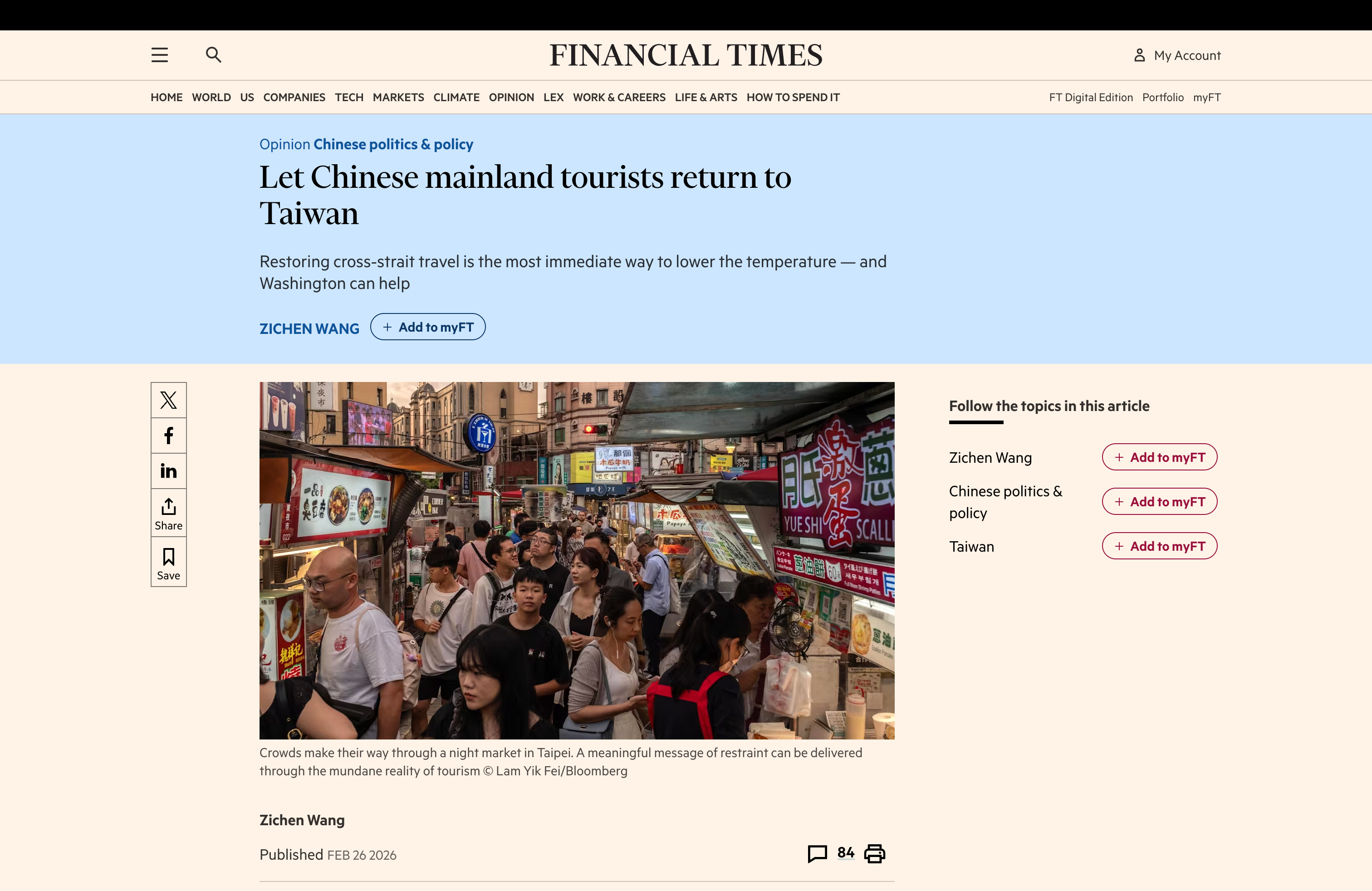 Zichen Wang’s op-ed on Financial Times, 26 Feb, 2026