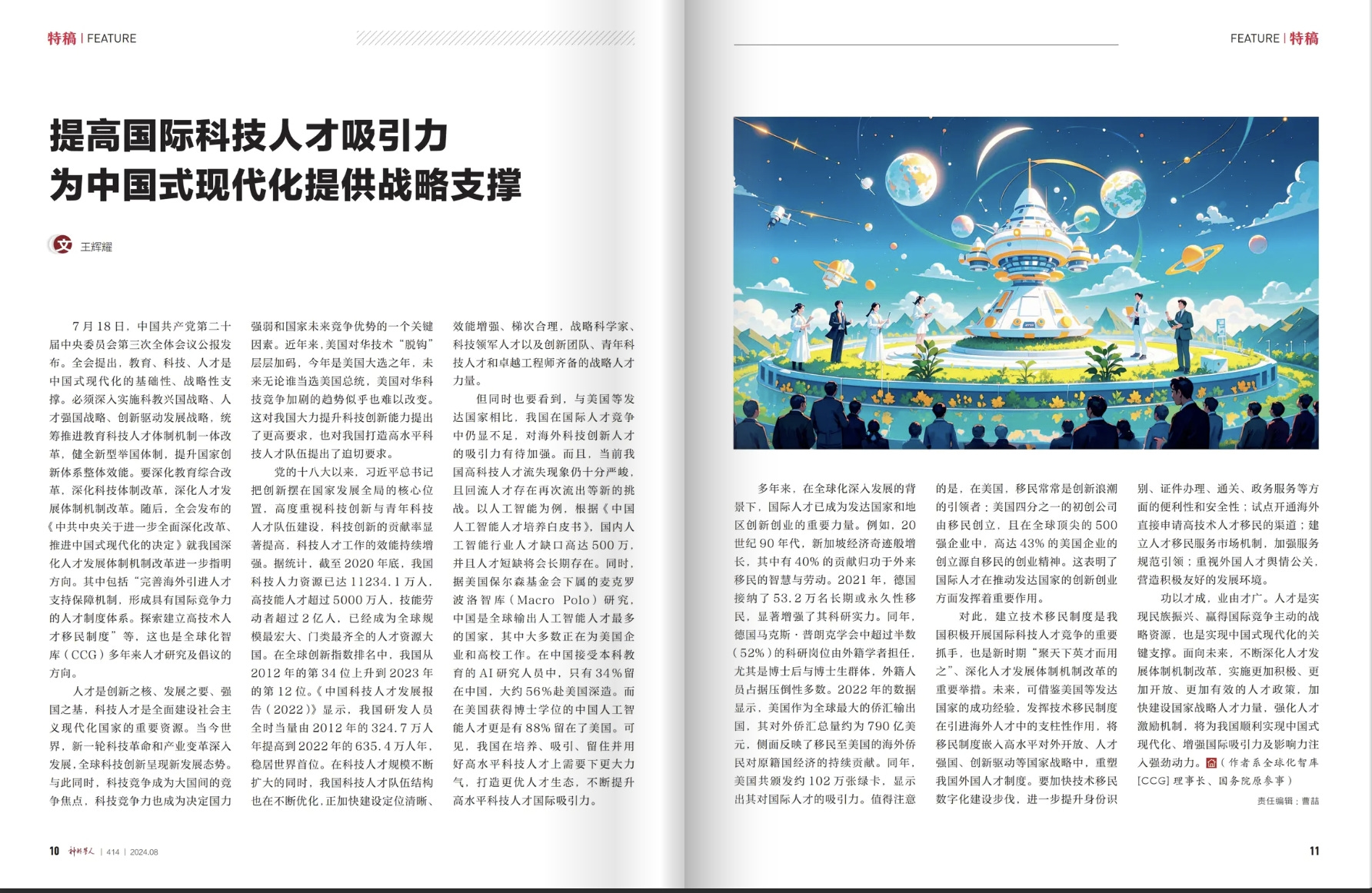 In an article published in the 8th issue of China Scholars Abroad (CHISA) in 2024, a magazine under the auspices of the Ministry of Education of China, Henry Huiyao Wang calls for greater emphasis on retaining and attracting scientific and technological talent, advocating for the establishment of a skilled worker immigration system in China. The article is also accessible on the official WeChat blog of the Center for China and Globalization (CCG). Here is a translation of his article.