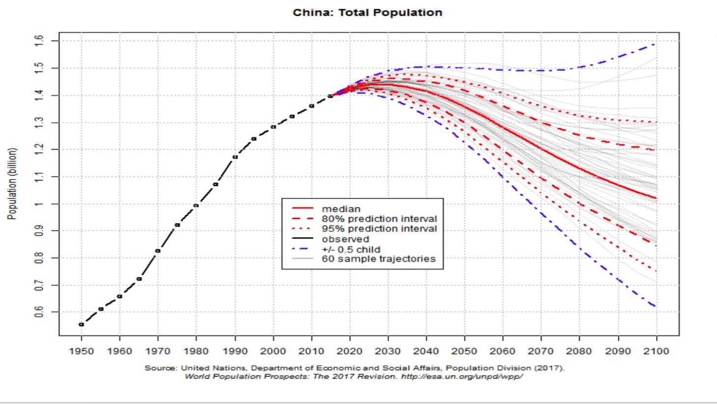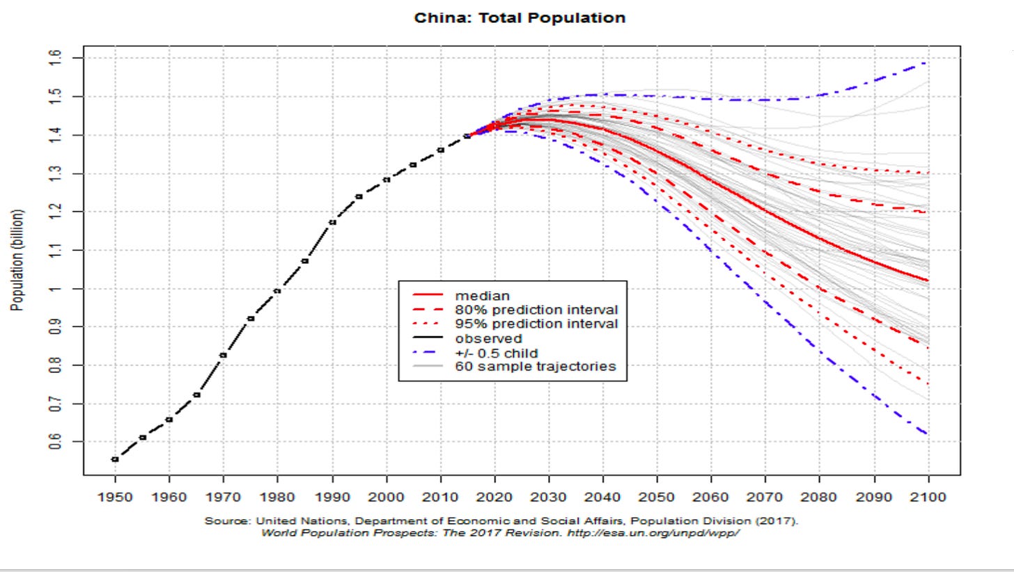 People are doing long-term projections. You can see that we are here, but depending on different scenarios, in the worst scenario, by 2100, China would only have 600 to 700 million people. And even in the medium scenario, we would be around 1 billion in population. So, really, a sharp reduction in the population.