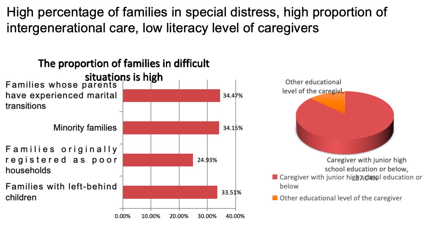 If you take a look at some of the data, it shows the proportion of families in difficult situations in raising and educating their children. Nationwide, no problem, but for families in poverty areas, or families that used to be poor, there is still a very high proportion of children with problems.