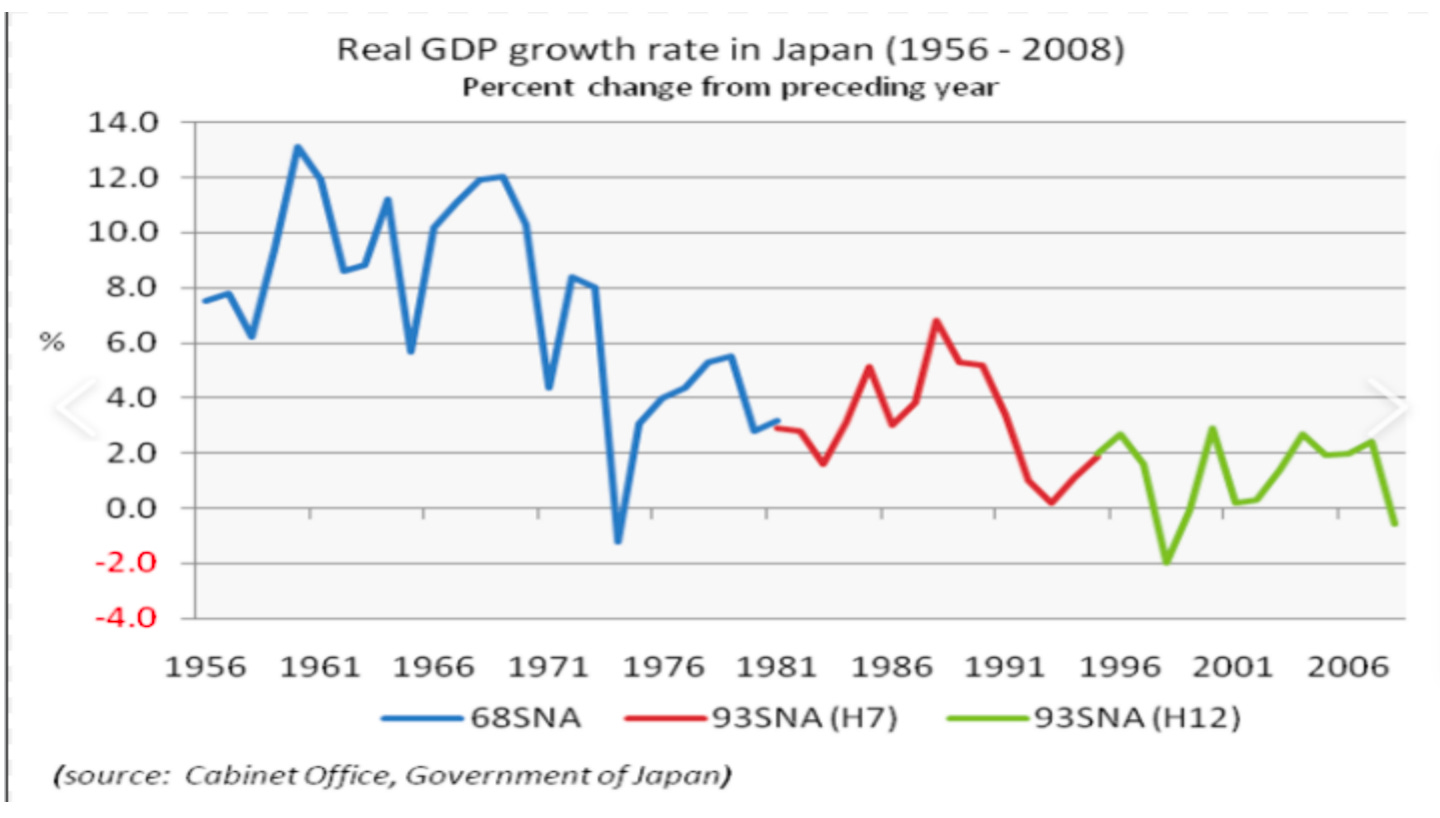But why so much worry about Japan? If you take a look at the next chart, economic growth, Japan’s economic growth was very high before up to the 1990s. Then the growth rate sharply reduced to around 2% every year, and in many years, even less than 2%.