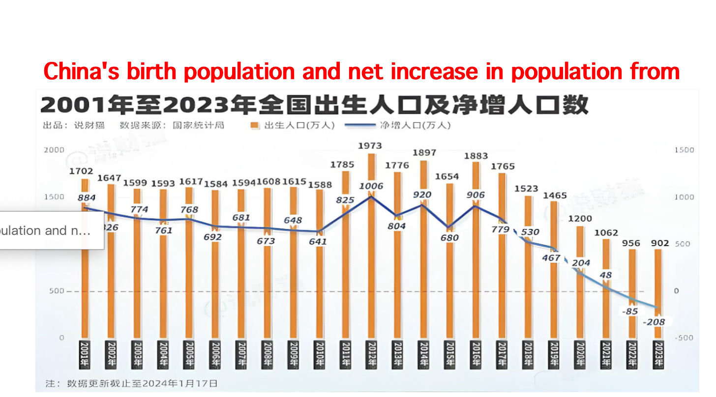Okay, nothing we do now can change this trend. The government has started doing the right things. A few years ago, we stopped the one-child policy, and now we even give subsidies to families that have children. So everything is changing. But from global experience, from the direct experience of developed countries, you can slow the trend of population reduction a little bit, but you can not change it.