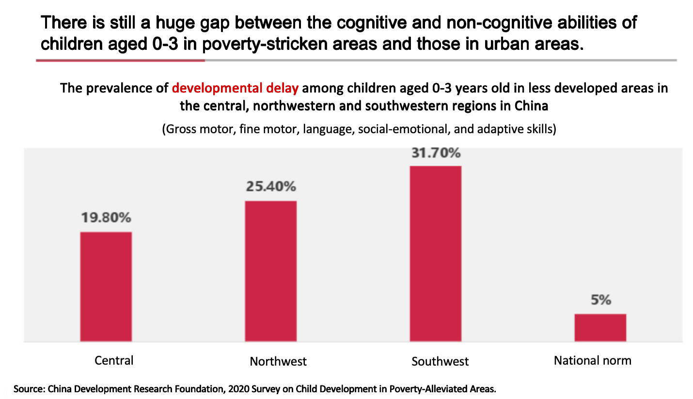 If you look at developmental delays among children, nationwide, it is about 5%. But you can see in central areas, poverty areas, and in the southwest areas, it is much higher than the national average. So this is a problem China has to address.