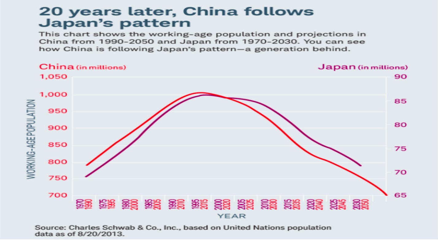 But why do people worry about the population reduction? Because we watched what happened in Japan. If you take a look, this is Japan’s population growth and then reduction. And the other one is China, just 20 years behind. Most likely, we will follow Japan’s pattern in terms of population, and our population will also sharply reduce, just 20 years behind.
