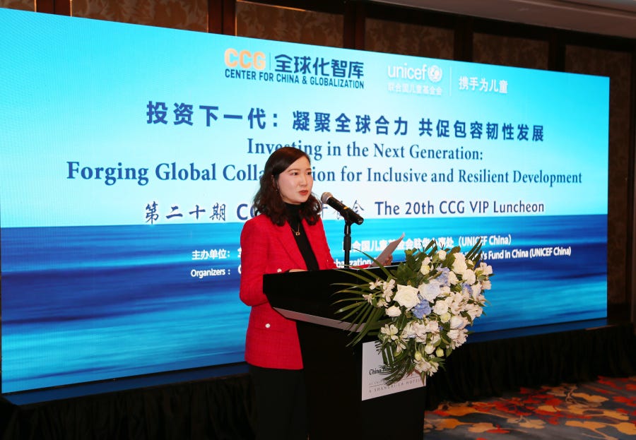 The CCG VIP Luncheon Series, initiated and hosted by the Center for China and Globalization (CCG), has become an important platform for dialogue and exchange. It brings together diplomats, international organisations, leading enterprises, and academic experts to share insights on China’s development and to foster mutual understanding and cooperation in an increasingly interconnected world, including in the area of global governance as well. This time, we are co-hosting with UNICEF China to conduct this event.